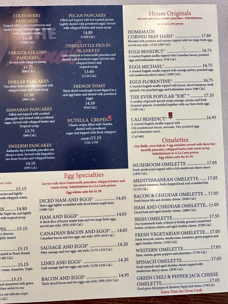 Original Pancake House Vista Menu